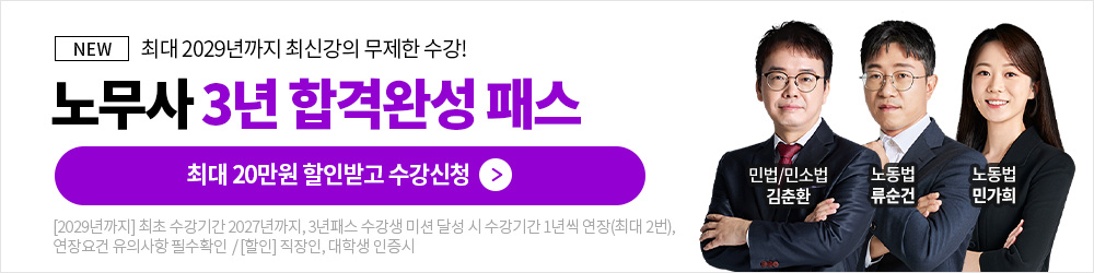 2. 해커스노무사 회원이라면 누구나 참여 가능하며, 강의는 하나의 ID당 1회만 지급되며, 재지급되지 않습니다.