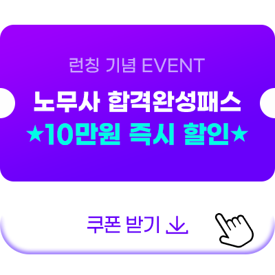 ※ 패스별 최초 / 연장 수강기한 1) 해커스노무사 3년 합격완성 패스(1+2차): 2026년 12월 31일까지 무제한 수강 / 미션 완료 시 수강기간 1년씩 연장 (최대 2년) 2) 해커스노무사 2년 합격완성 패스(1+2차): 2026년 12월 31일까지 무제한 수강 / 미션 완료 시 수강기간 1년 연장