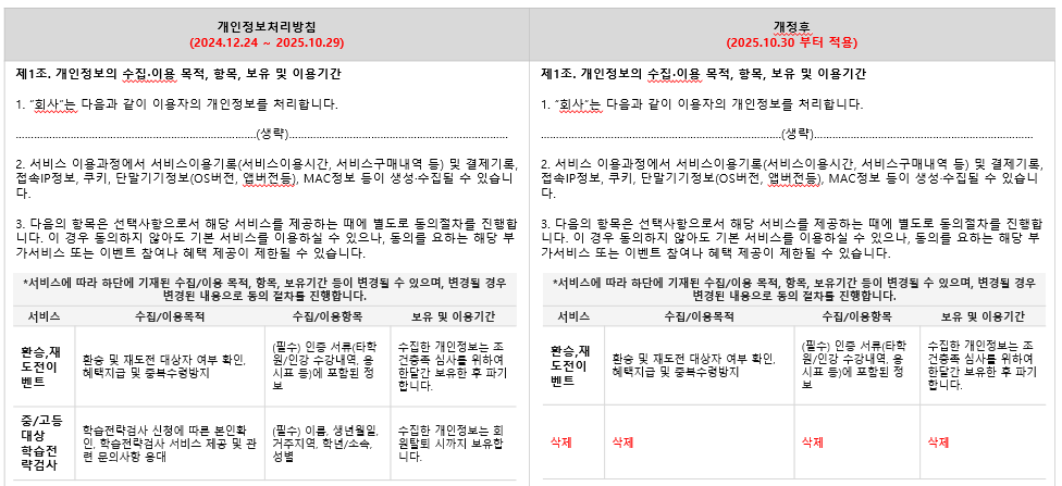 - [공지] 개인정보처리방침 개정내용 (2025.10.30) 2025.10.22